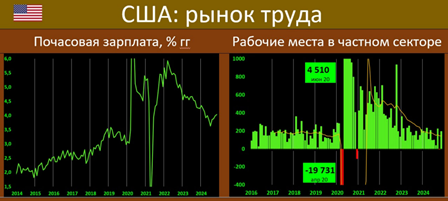 Цифры вышли горазо лучше показателей от ADP в среду, которые показали рост занятости на 146К против ожидавшихся 166К. Провал прошлого месяца пересмотренного в сторону повышения показателя в 36К в октябре, на который сильно повлияли забастовка в Boeing и разрушения, вызванные ураганами Helene и Milton, преодолён. Занятость выросла в сфере здравоохранения (+54К), отдыха и гостеприимства (+53К), госуправления (+33К) и социальной помощи (+19К). С экономикой все в порядке, собственно, именно об этом и доложил Пауэлл двумя днями ранее. Правда, можно определенно посетовать на высокие темпы прироста зарплат, но инфляционные тренды во многих странах сейчас не самые оптимистичные