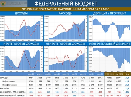 По данным Минфина в ноябре фед.бюджет был исполнен с небольшим дефицитом: -169 млрд; по итогам 11М24: -389 млрд.