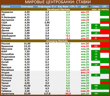 На развивающихся рынках ставку понизили ЮАР, Колумбия, Индонезия, С.Аравия, Перу, Ю.Корея, Чили, Турция и Аргентина