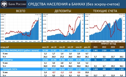 • СРЕДСТВА НАСЕЛЕНИЯ В БАНКАХ в 2024г выросли на 12.6 трлн (+28.1%) до 57.5 трлн руб