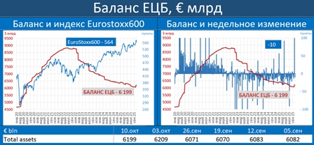 Баланс европейского регулятора за минувшую неделю заметно сократился на -€10 млрд до €6.199 трлн vs +€138 млрд неделей ранее. С пиковых значений (€8.836 трлн) баланс уменьшился на -€2.637 трлн.