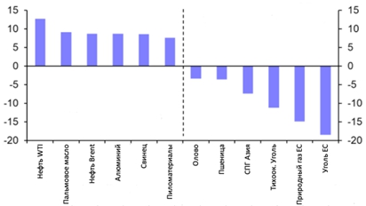 Динамика сырьевых товаров (30 сентября – 7 октября, %)