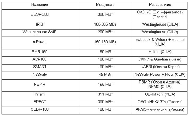 Перспективные малые модульные реакторы, которые находятся на стадии разработки.