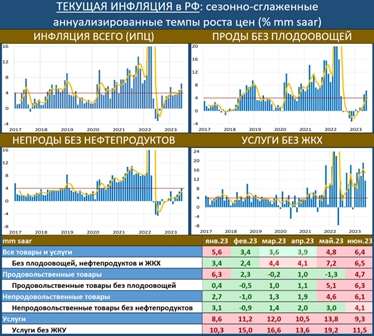 Отметим, что Минэк оценил сезонно-сглаженный рост цен в июне более скромно: 0.40% mm sa (4.9% mm saar). Качественного вывода это не меняет: ИНФЛЯЦИЯ В ИЮНЕ СУЩЕСТВЕННО УСКОРИЛАСЬ.