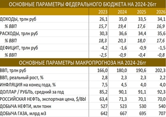 Прогнозы Минэка на 2023/24гг завышены. Неадекватно выглядят цифры по экспорту в 2023г, предполагающие, что месячный экспорт чудесным образом подскочит с $34 млрд в янв-авг до $46 млрд в сен-дек. Эта "ошибка" в расчетах и поднимает оценку ВВП до 2.8% (консенсус сейчас ближе к 2%). В прогнозе на 2024г не учтено влияние жесткой ДКП. Неадекватен прогноз инфляции на 2023г (7.5%). ВВП и инфляция завышены для того, чтобы завысить оценку бюджетных доходов и увеличить расходы. Но даже с такими макропараметрами наскрести 35 трлн в 2024г будет сложно без доп увеличения налоговой нагрузки или разовых изъятий…