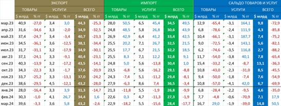 ЦБ опубликовал по внешней торговле. Торговый профицит - $16.7 млрд – max с дек.22. Экспорт товаров - на max с сент.23 - $39.6 млрд, а импорт товаров замер около $23 млрд.