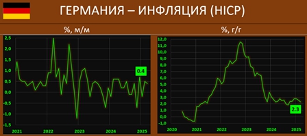 Гармонизированный показатель HICP уменьшился до 2.3% гг vs 2.6% гг (ожидания: 2.4% гг), 0.4% мм vs 0.5% мм (ждали 0.5% мм).
